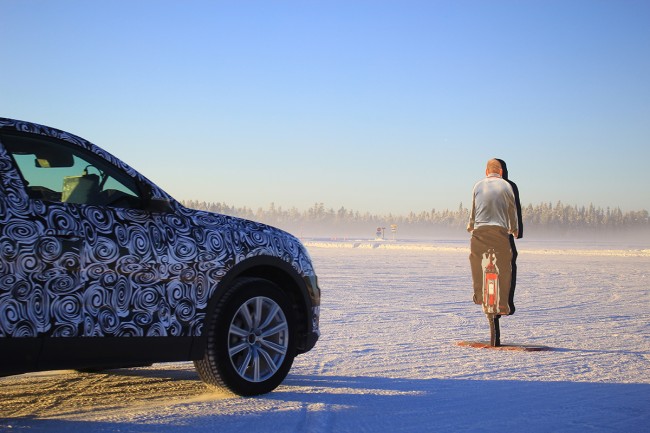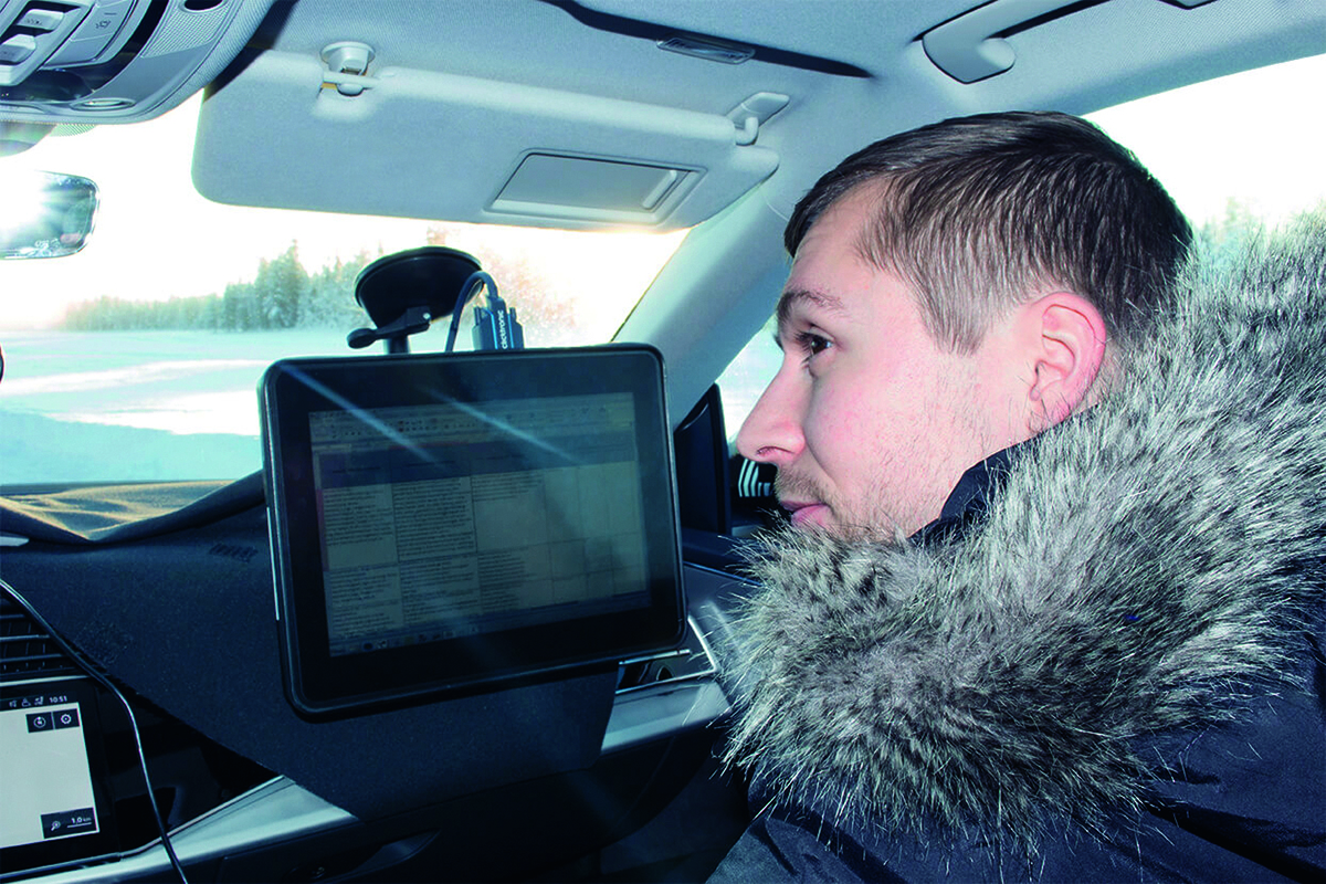 „Je nachdem wie kritisch die Situation ist, reagiert das System. Bei der niedrigsten Warnstufe wird der Fahrer durch ein optisches Signal im Cockpit gewarnt. Wenn es richtig kritisch wird, dann kommt es zur Notbremsung und zur Straffung der Sicherheitsgurte“, sagt Christian. Doch wieso reisen die Ingenieure hunderte Kilometer in den bitterkalten schwedischen Norden, um zu testen? „Das Gelände bietet die idealen Bedingungen. Zum einen überprüfen wir die Performance der automatischen Bremsung unter Extrembedingungen. Immerhin ist der Boden extrem glatt. Zum anderen testen wir die Leistung der Kamera bei schwierigen Sichtverhältnissen. Nebel und Schnee sind hier an der Tagesordnung. Wenn das System hier funktioniert, dann wird es das auch woanders“, erklärt er.