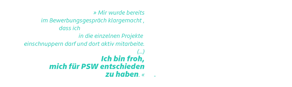 Vor kurzem wurde PSW mit dem Siegel der Industrie- und Handelskammer für exzellente Ausbildungsqualität und besonderes Engagement ausgezeichnet. Wir engagieren uns auch weiterhin und suchen für das Ausbildungsjahr 2022 junge Talente, die unser Team stärken.