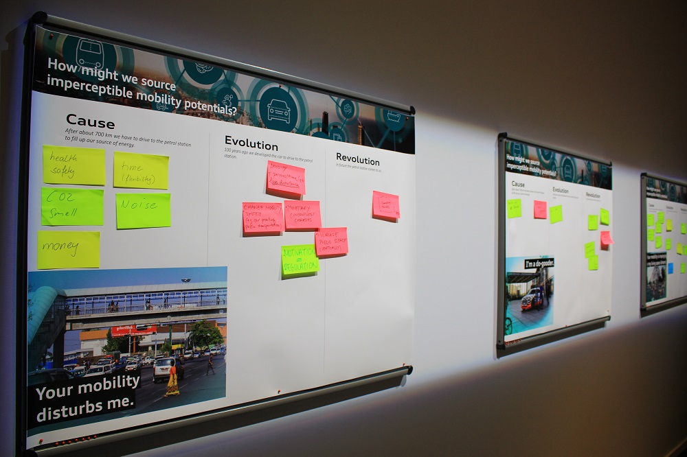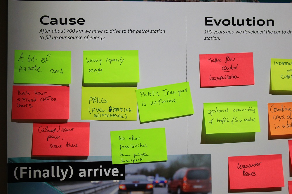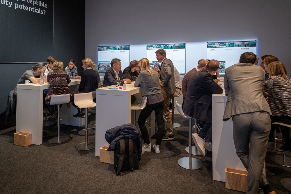 Nach dem Pitch haben sich rund 30 Personen zur ersten Workshoprunde versammelt – alle Tische waren voll besetzt. Die Teilnehmer kamen nicht nur aus dem Automotive-Bereich: Auch Vertreter aus der Start-up-Branche oder aus dem Versicherungsbereich waren anwesend. Nachdem Susan einen kurzen Impulsvortrag gegeben hatte, gingen die Teilnehmer in die Diskussion. „Es hat teilweise sehr intensive, ja fast hitzige Gespräche gegeben“, sagte Pedro. „Manche haben den Standpunkt vertreten, dass sie gar keine individuelle Mobilität bräuchten. Andere jedoch haben auf ihr eigenes Fahrzeug bestanden.“ Und manchen hat der Workshop ganz neue Perspektiven eröffnet: „Bei einigen Diskussionen ist den Teilnehmern aufgefallen, dass sie mit ihrer eigenen Mobilität teilweise Dritte behindern. Das hat viele dazu angeregt, auch mal anders zu denken“, sagte Susan.