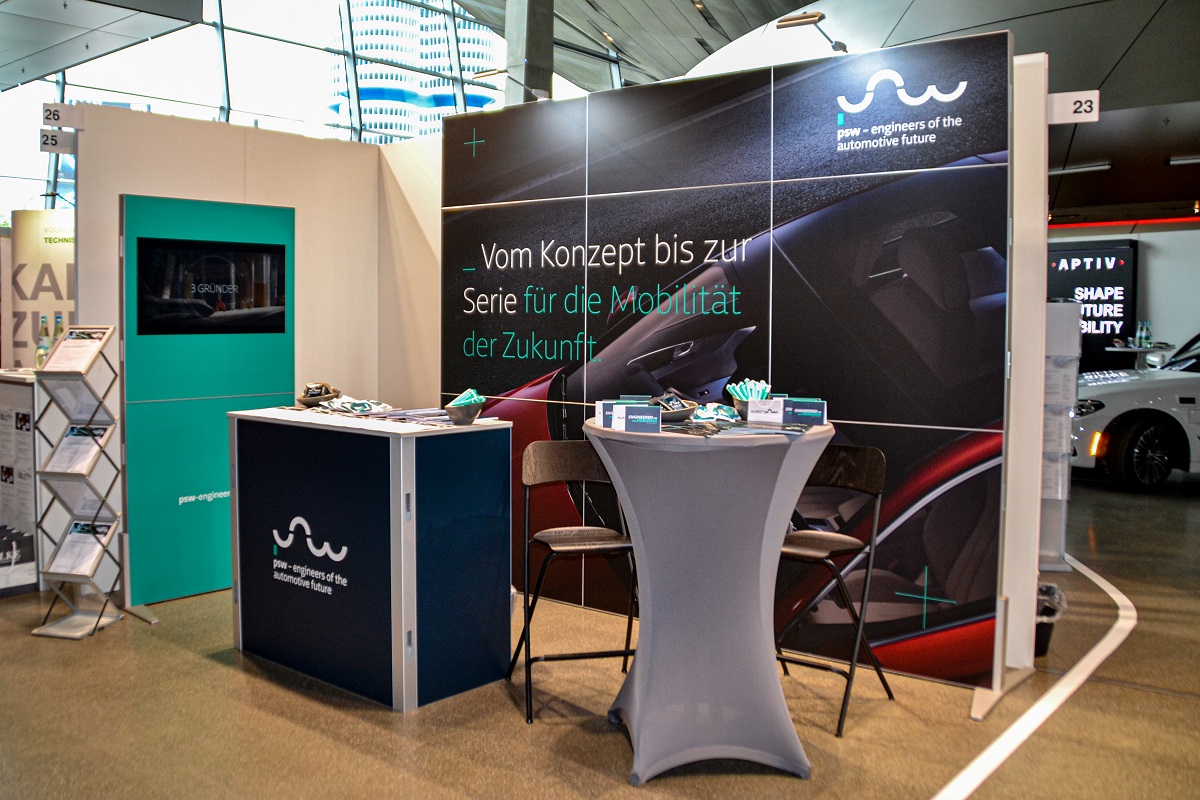 Bei der Car Connect Messe in München informiert das PSW-Karriereteam die Besucher über aktuelle Stellen und das Unternehmen.