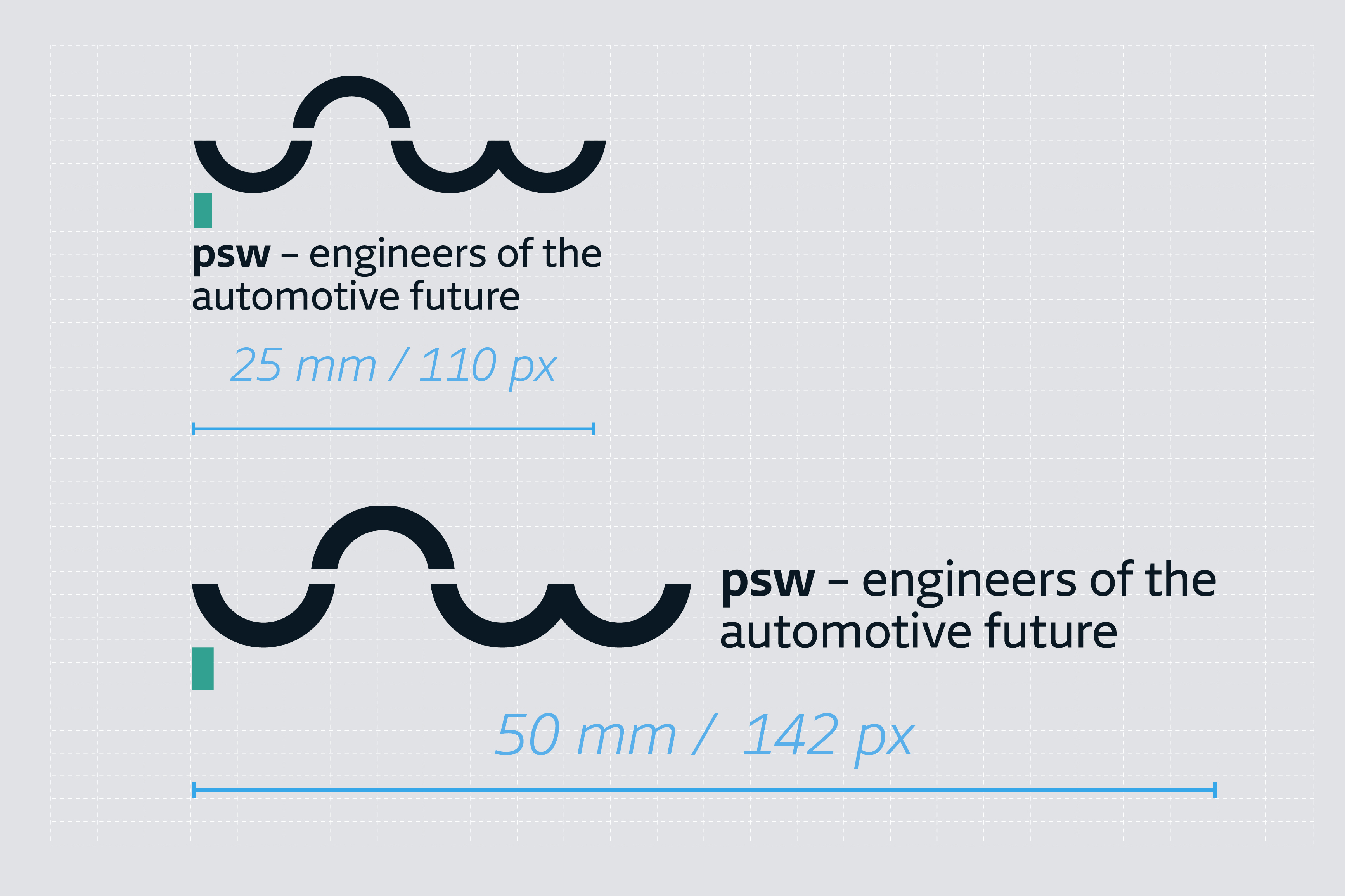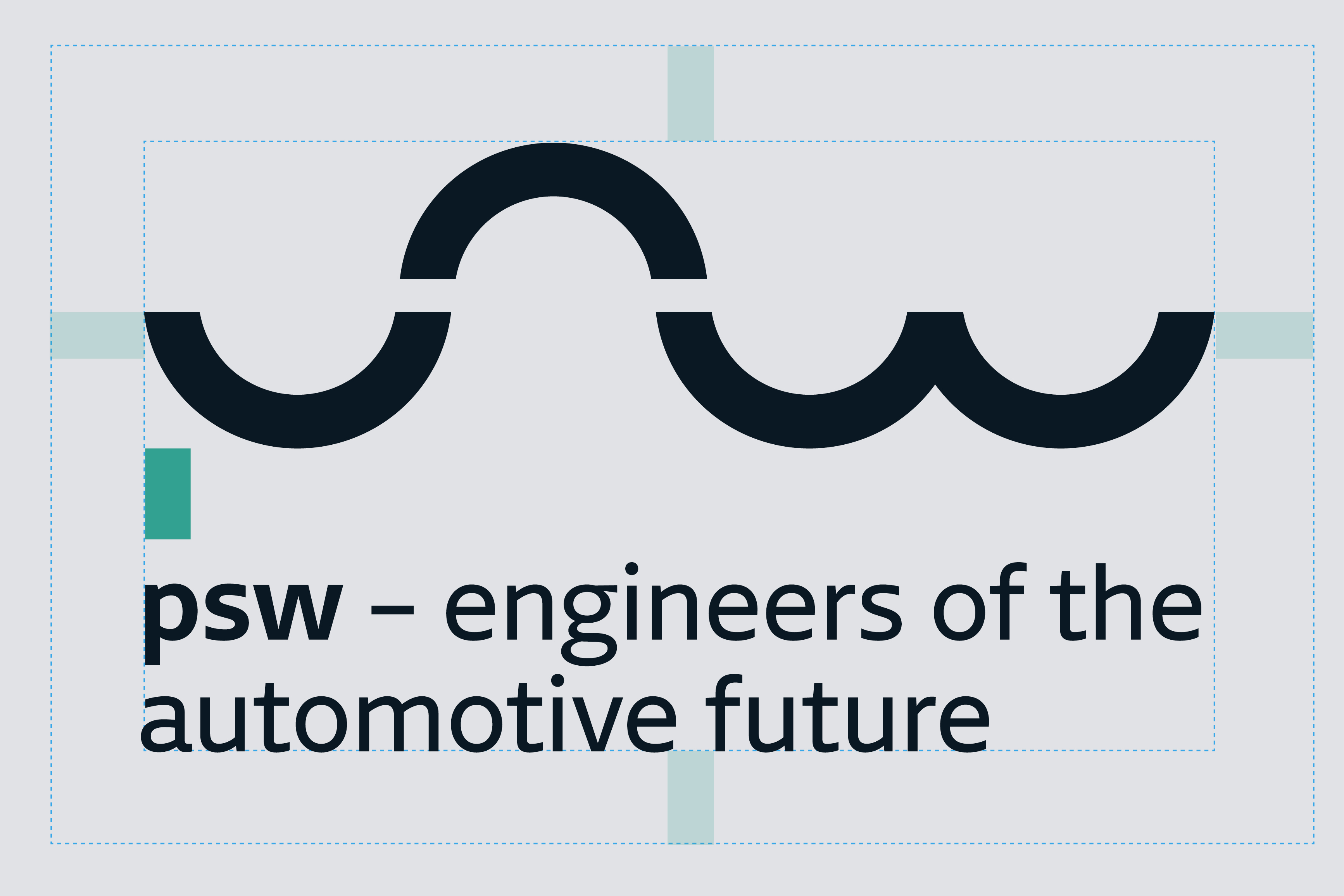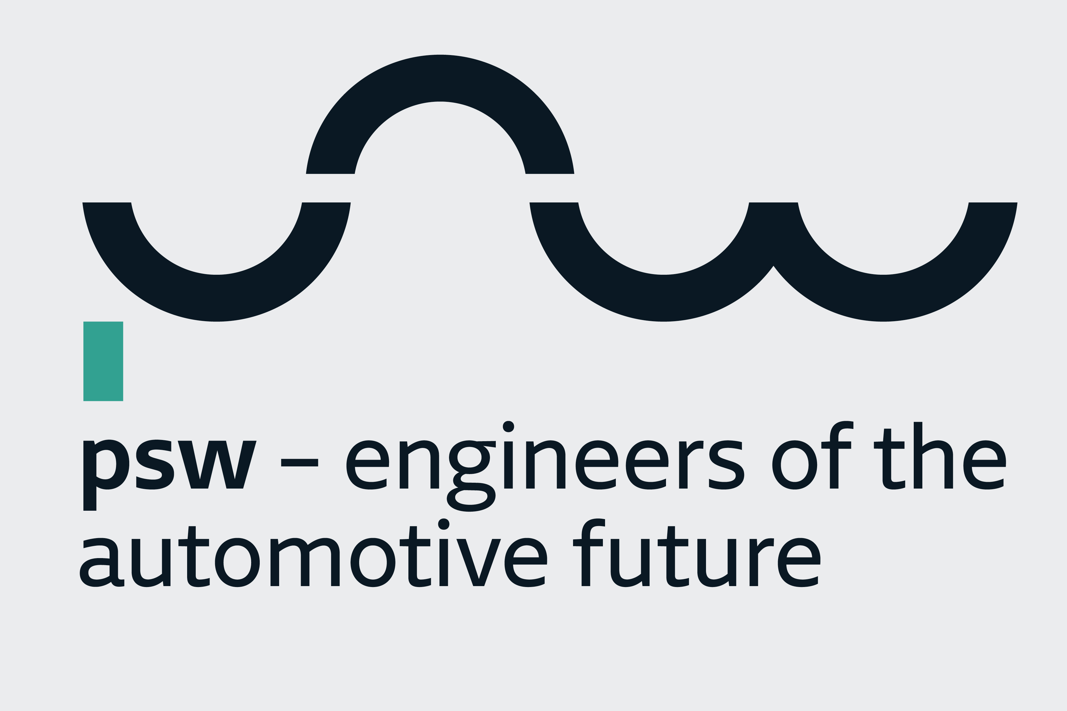 Das Markenzeichen setzt sich aus drei Bestandteilen zusammen: Den ikonographischen Initialen, dem Markennamen PSW sowie der Tagline Engineers of the automotive future. Diese Kombination setzen wir in allen Medien ein.